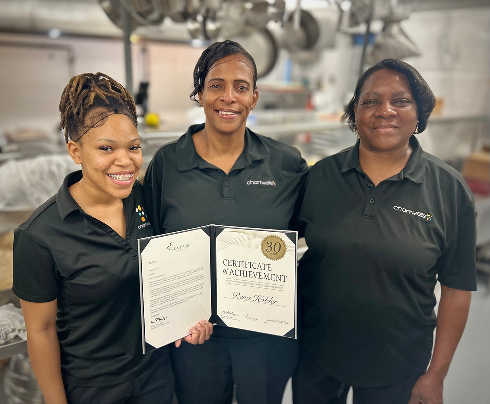 Together, the three women handle a surprisingly large workload. On an average day, they serve about 70 breakfasts and more than 100 lunches. And it’s not just one option on the tray. “We serve a main dish, pizza every day, another alternate, salad, plus sides and a la carte,” Rena explained. “It makes time go by really fast—and that’s what I love.”